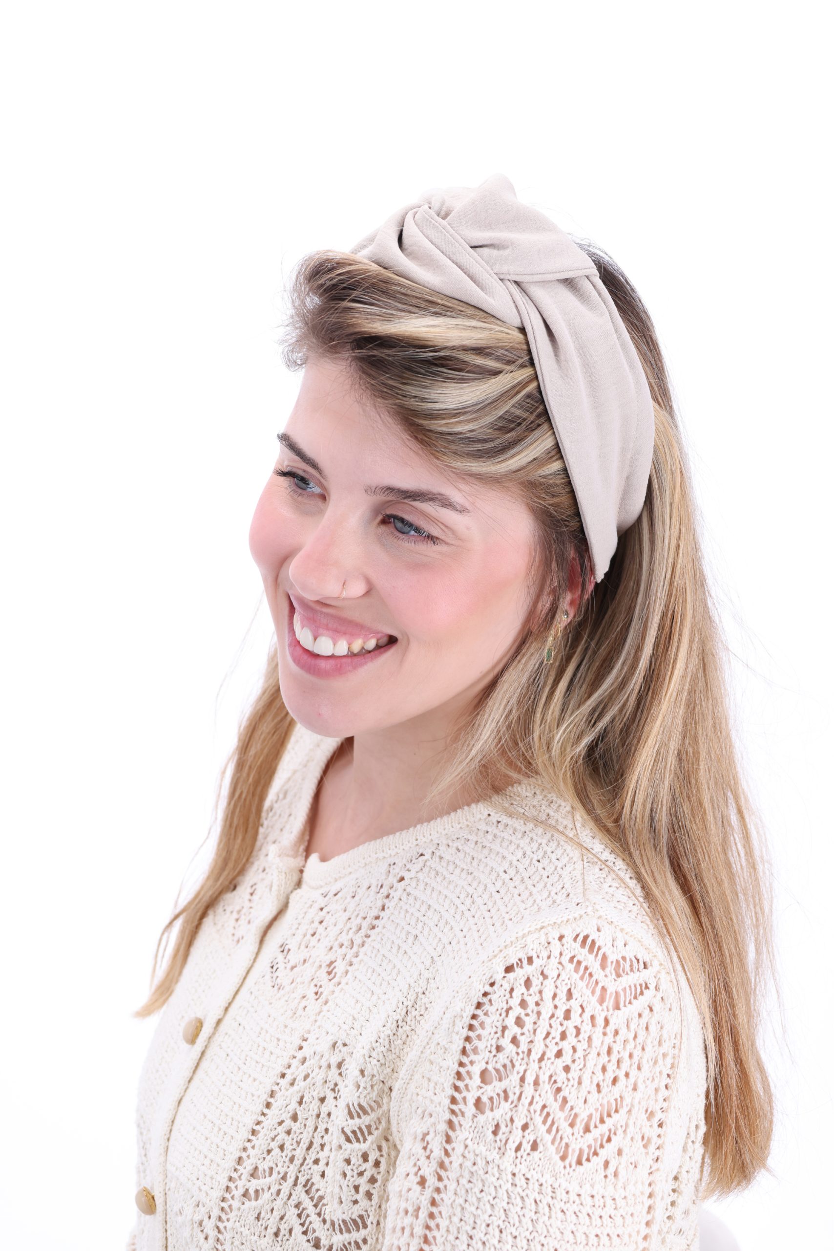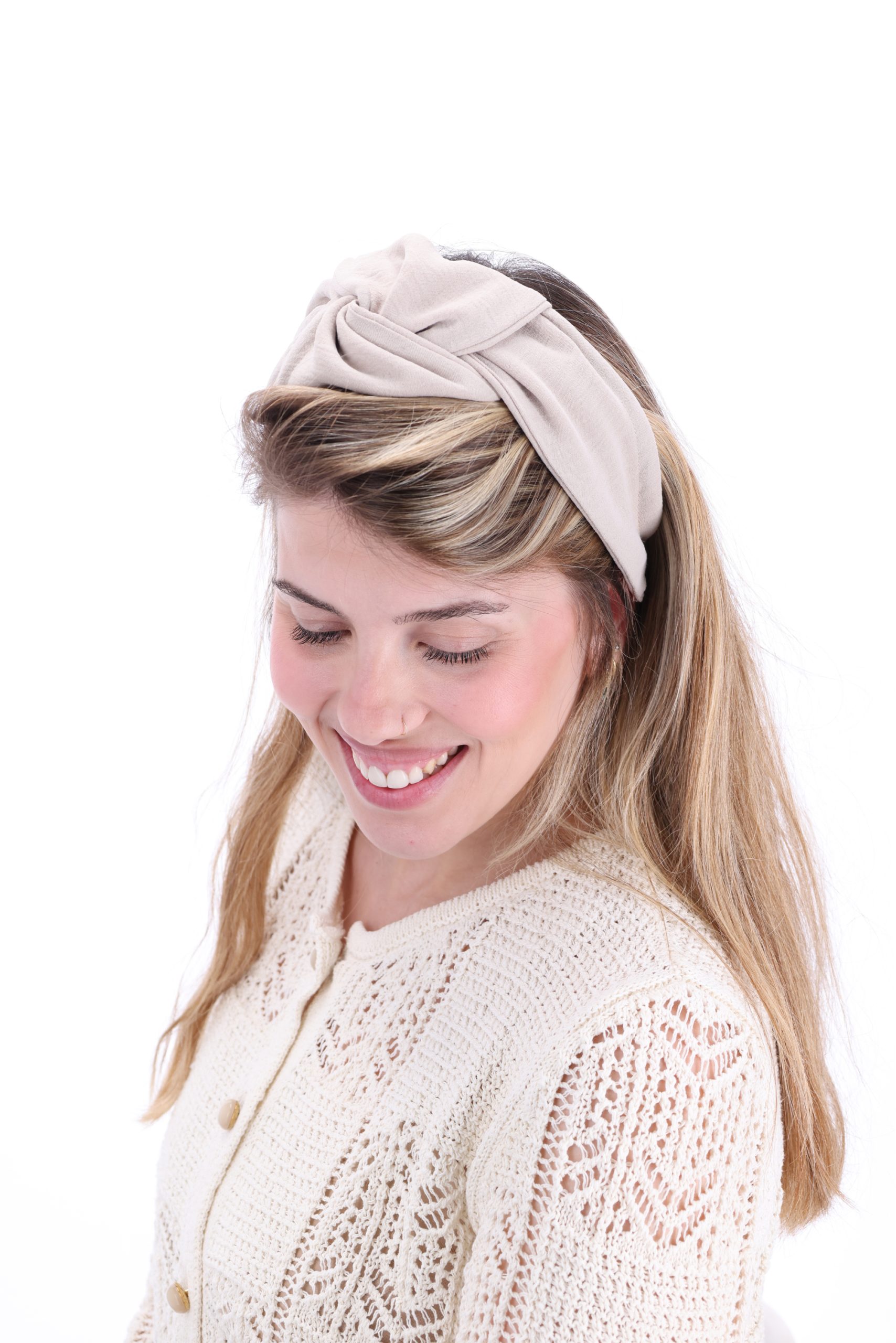 קשת לשיער עם חוט ברזל תפור בפנים , מבד כותנה איכותי בצבע אבן
