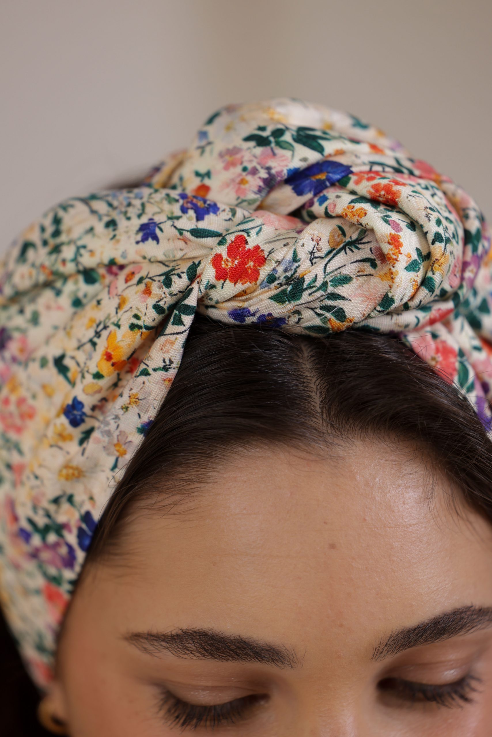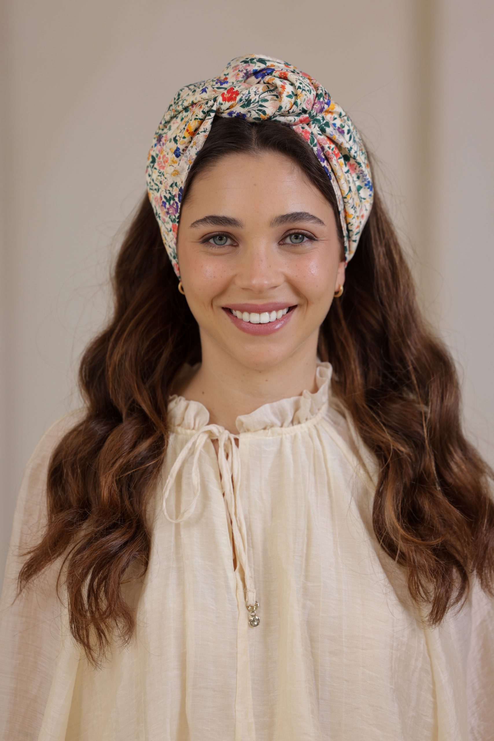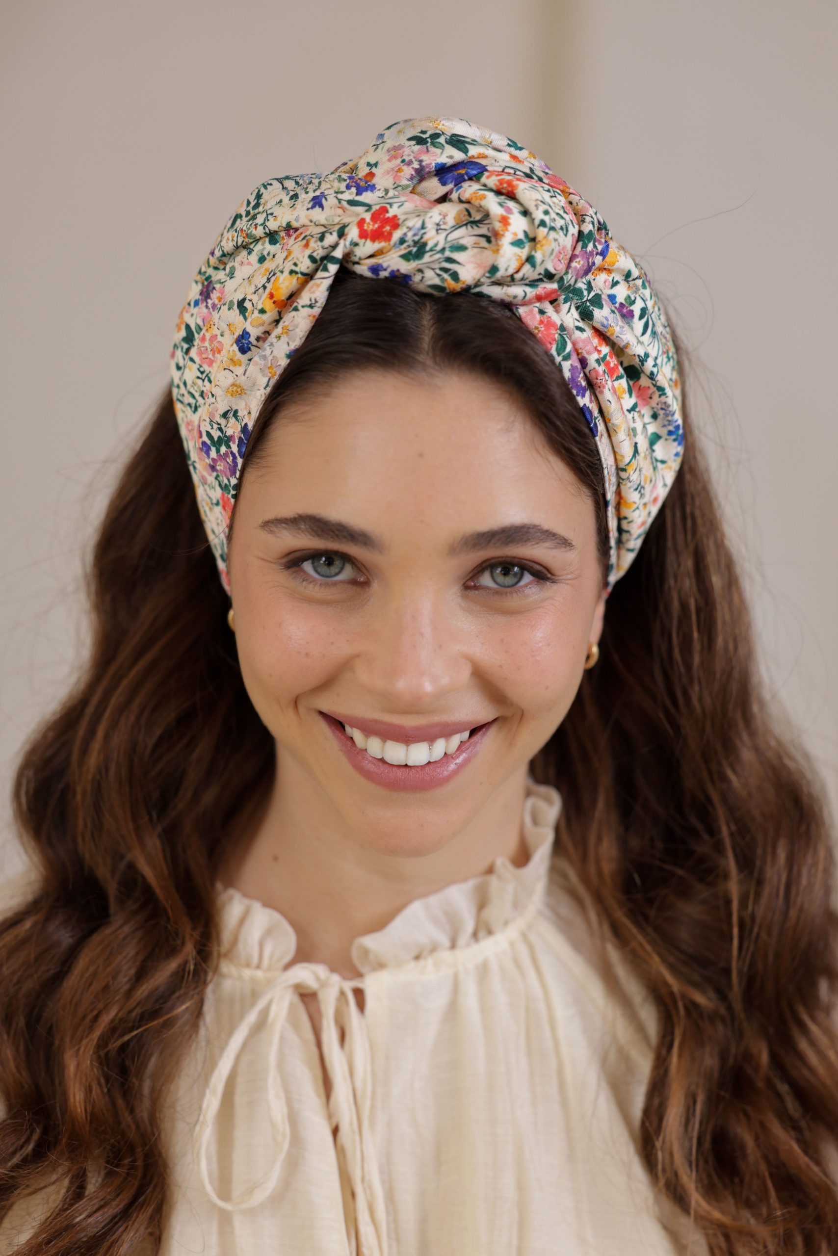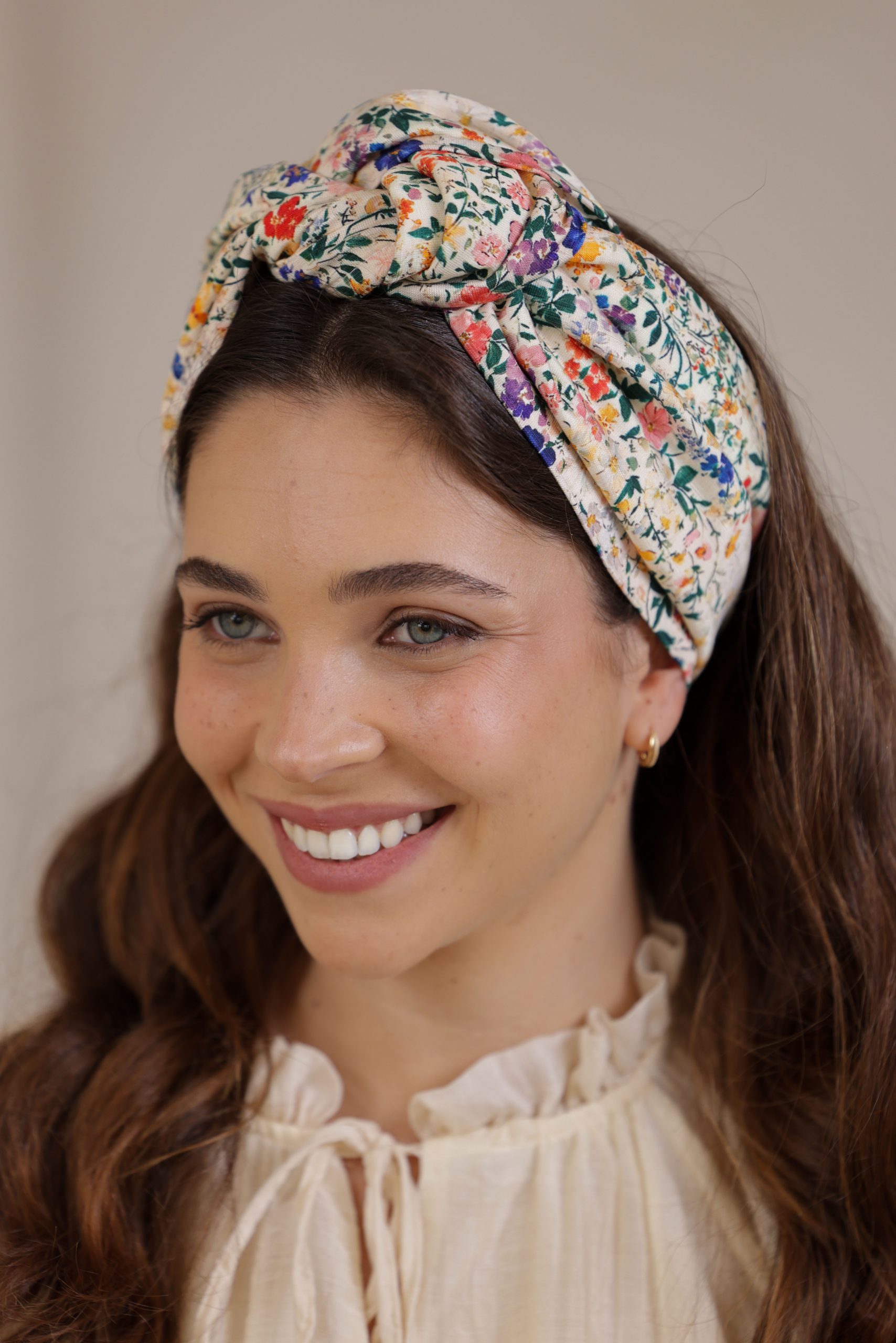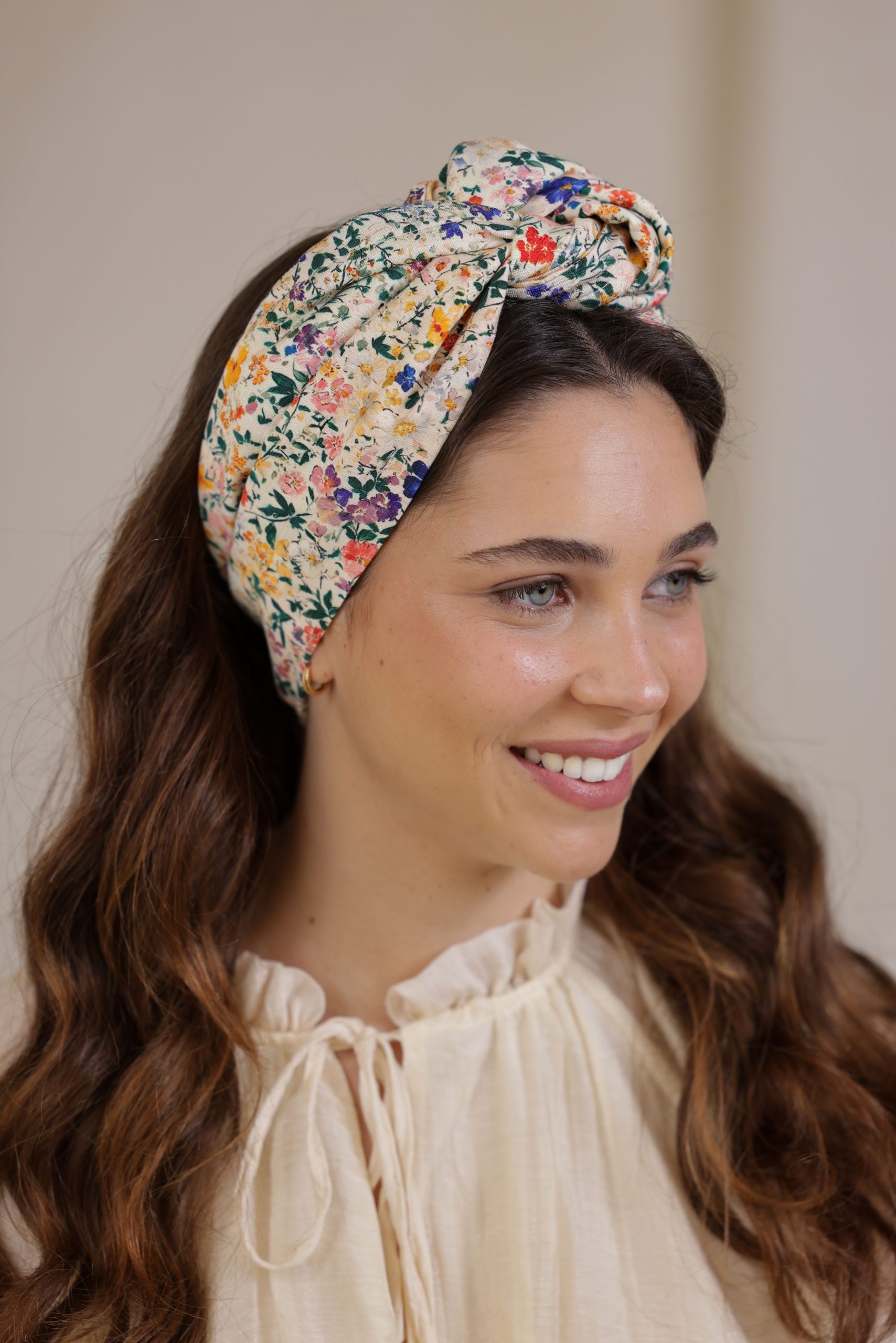 סרט לשיער עם חוט ברזל תפור בפנים ליצירת קשירות מגוונות ופשוטות, מבד כותנה איכותי עם הדפס פרחוני בשלל צבעים