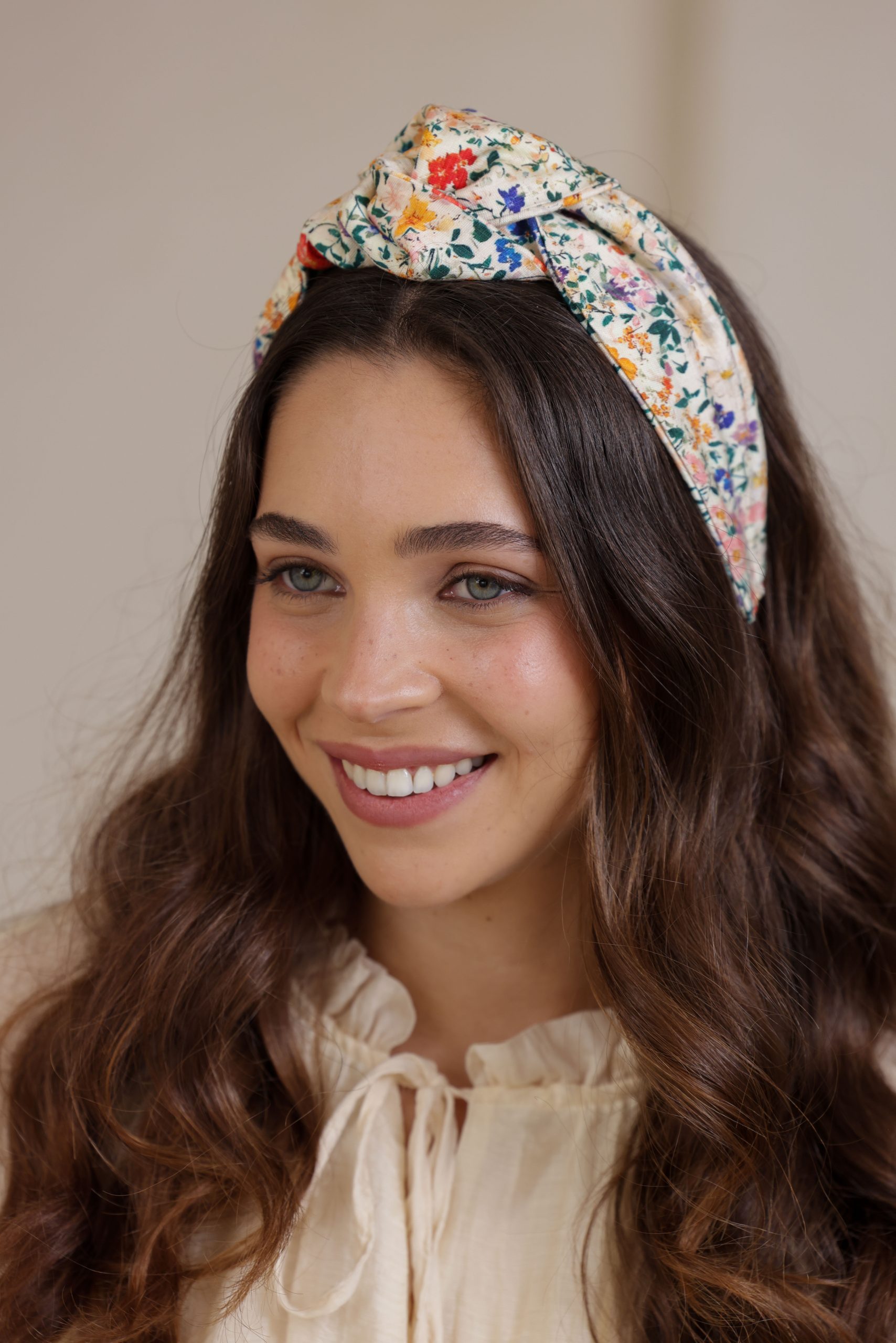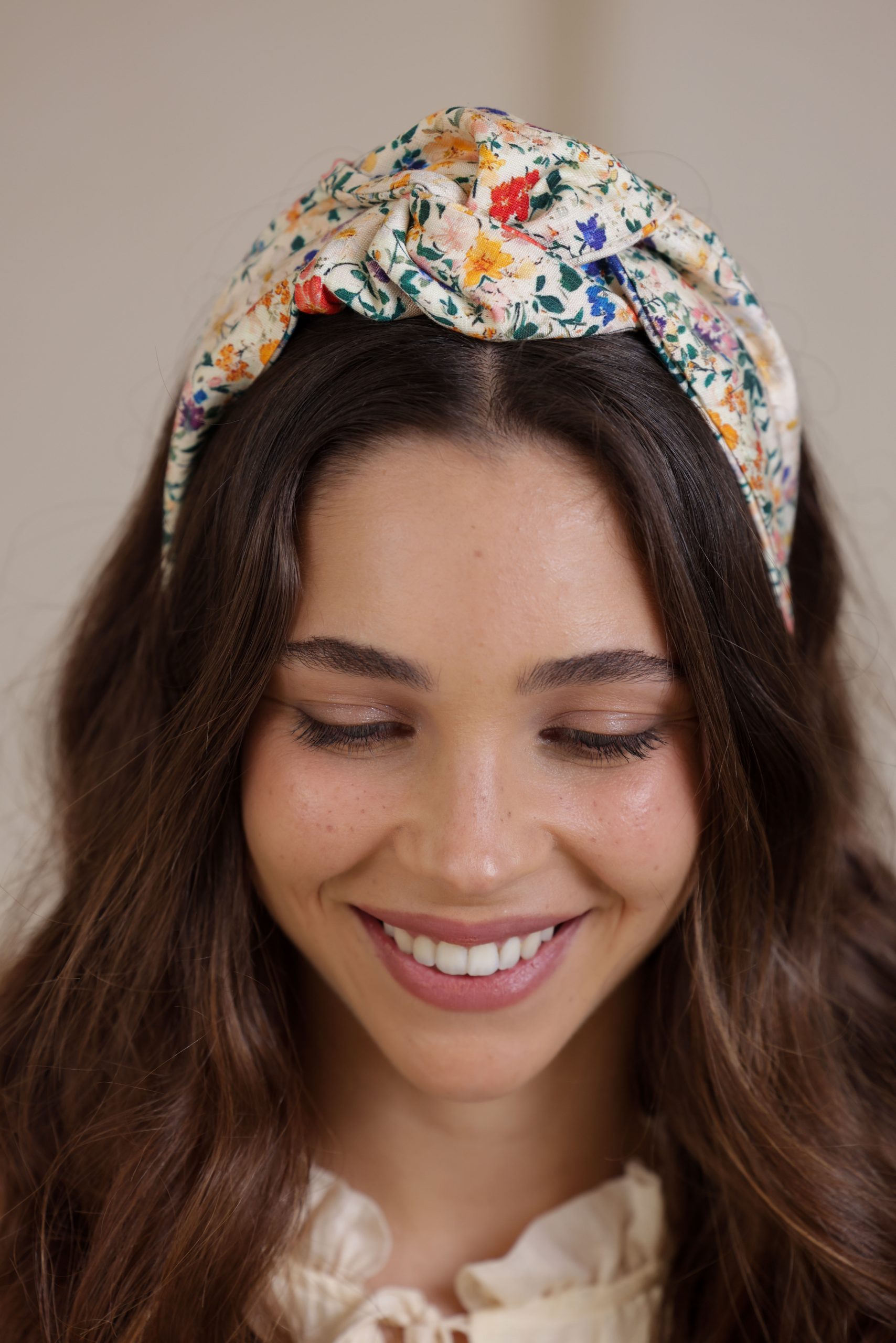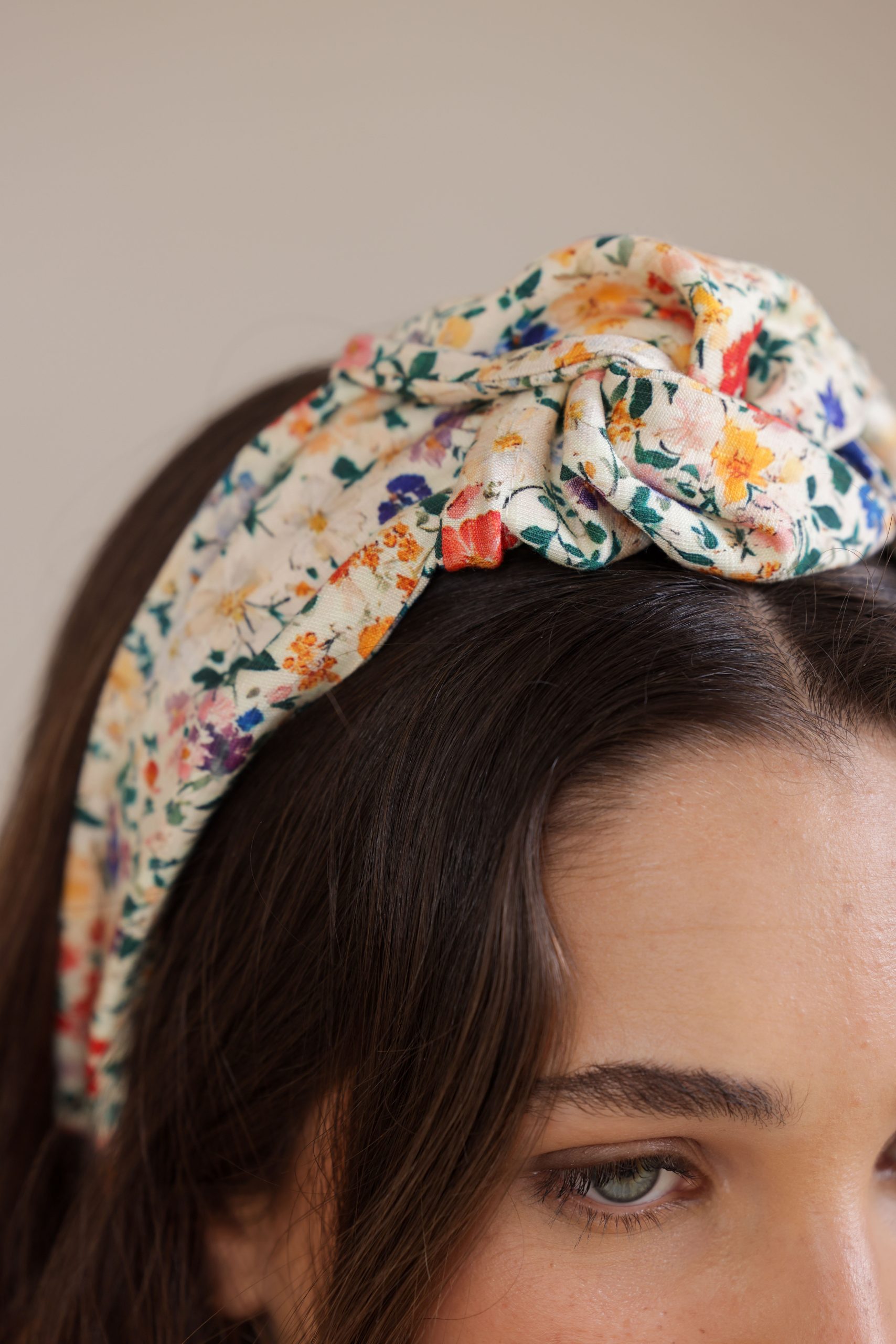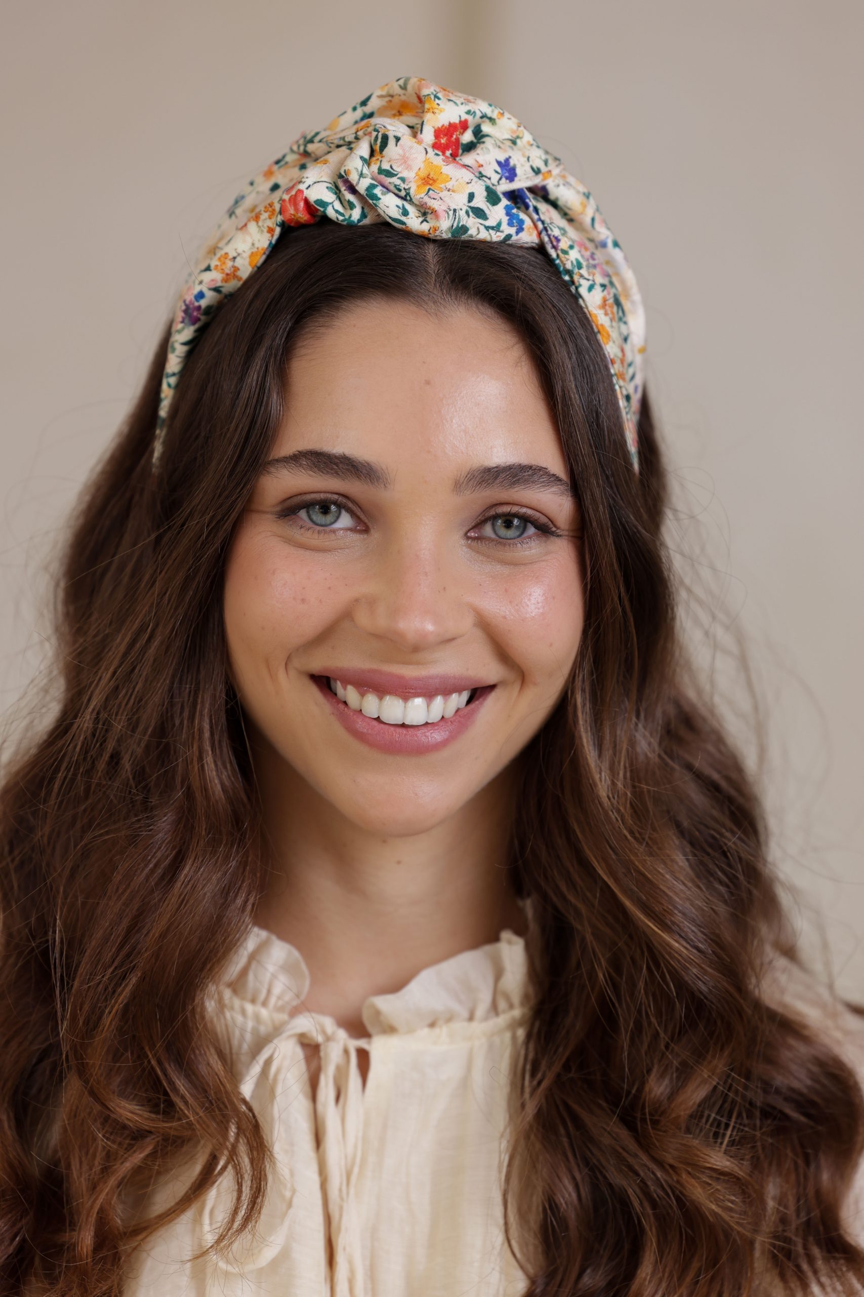 קשת לשיער עם חוט ברזל תפור בפנים, מבד כותנה איכותי עם הדפס פרחוני בשלל צבעים