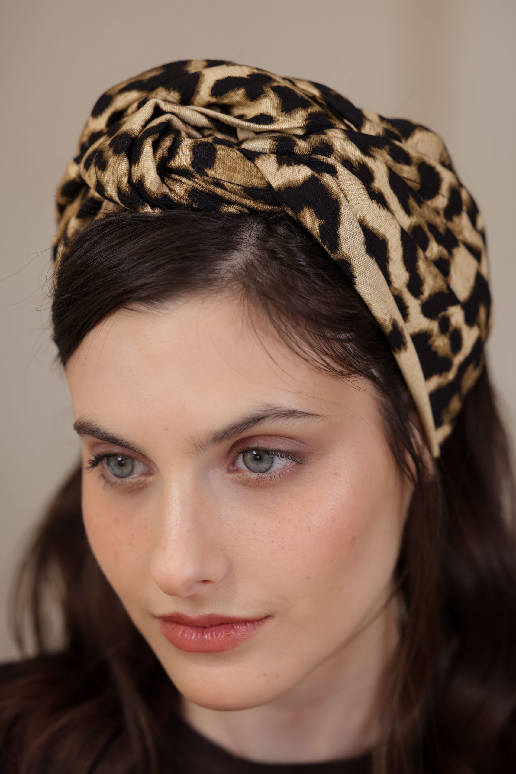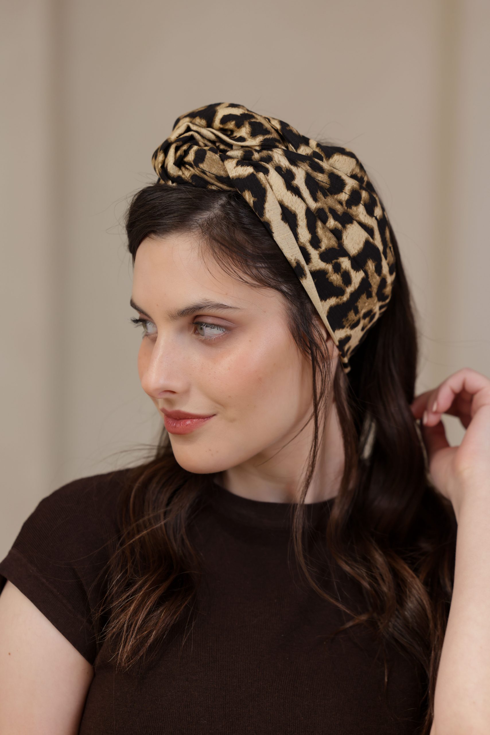 סרט לשיער עם חוט ברזל תפור בפנים ליצירת קשירות מגוונות ופשוטות, מבד כותנה איכותי בהדפס מנומר