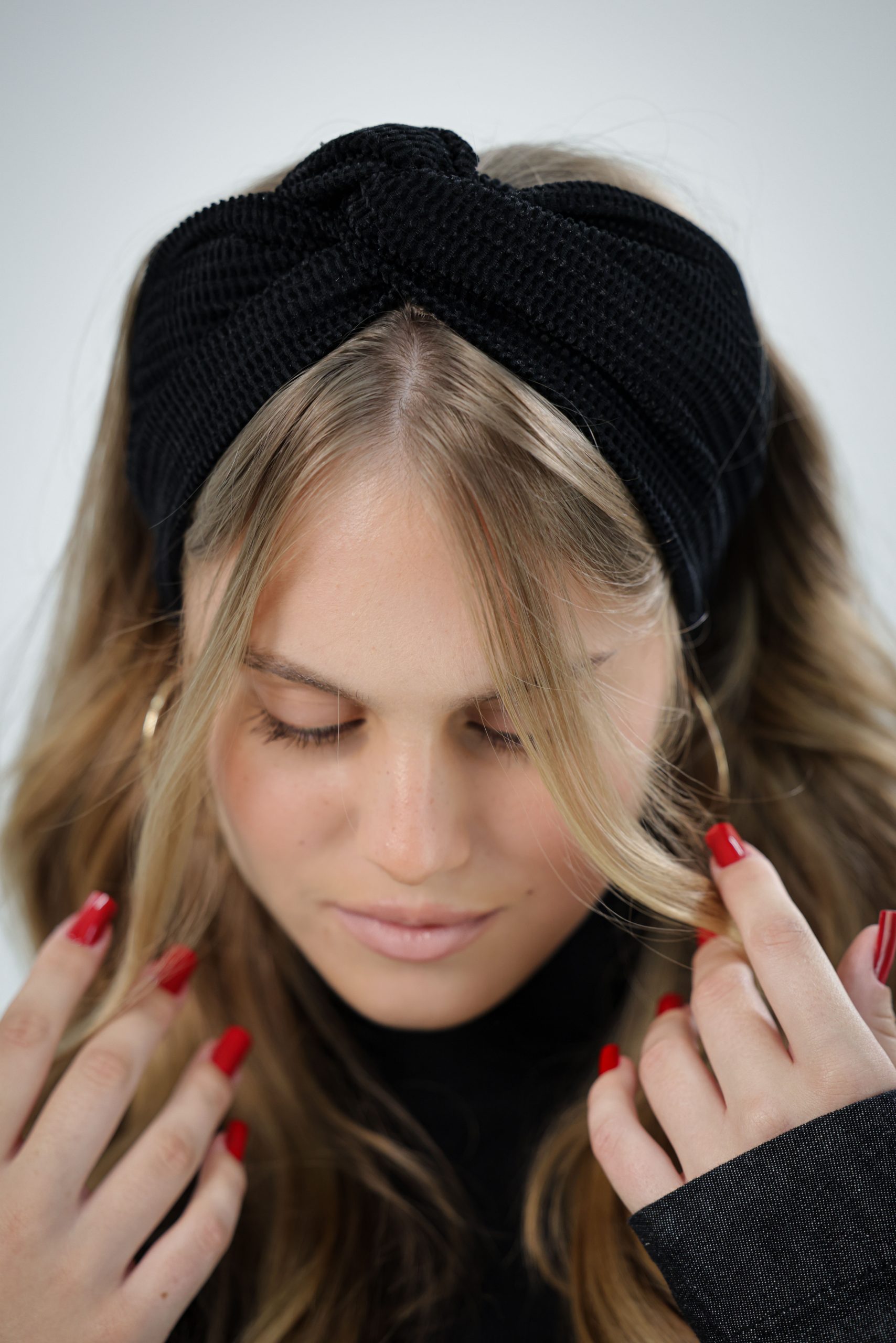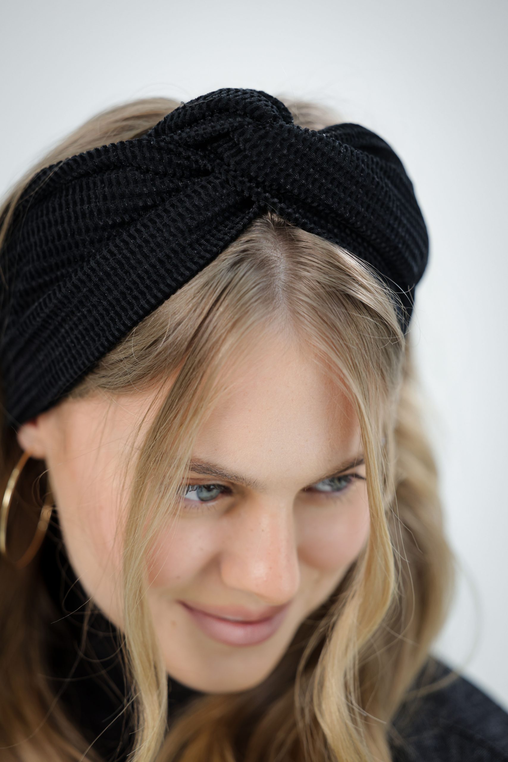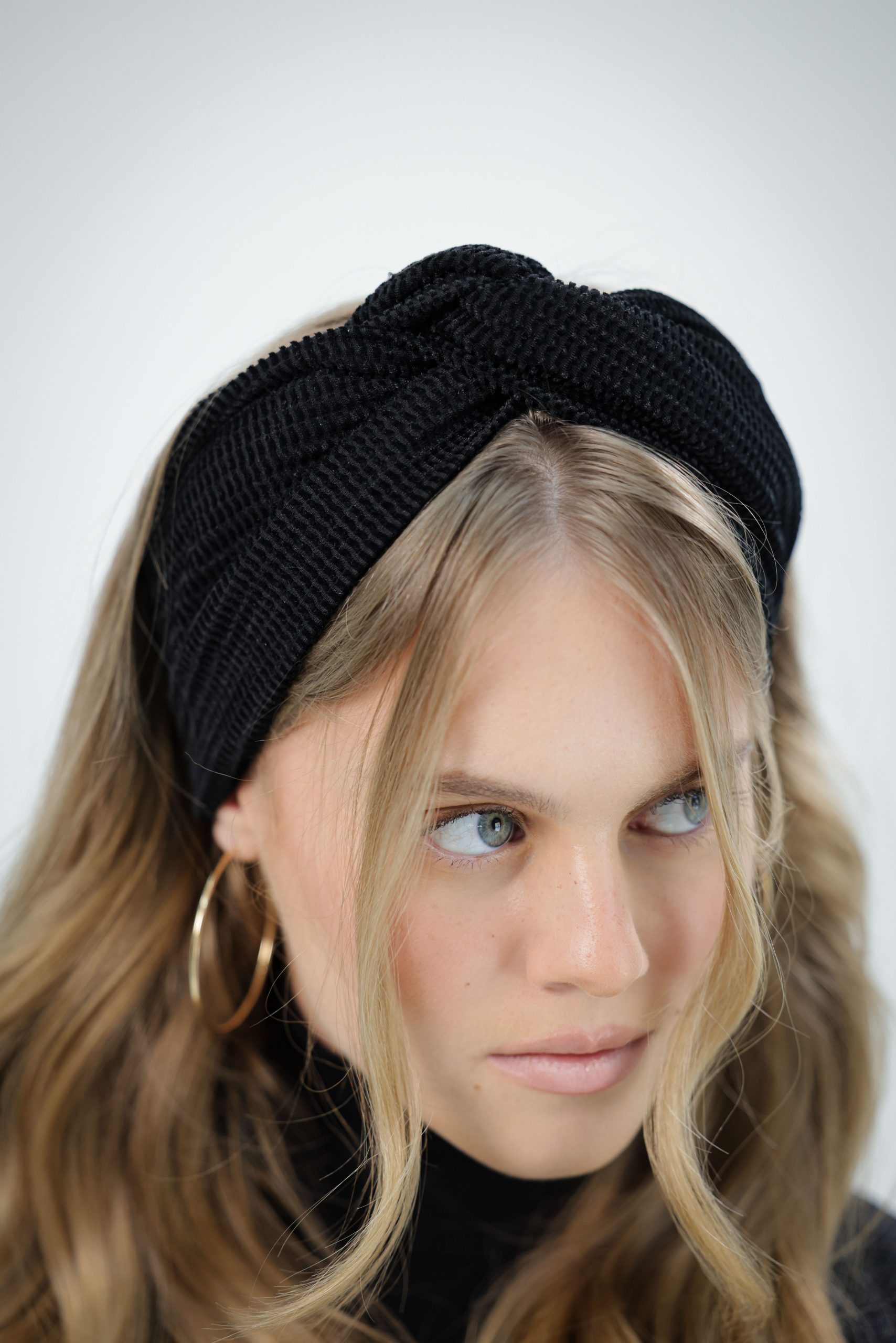 סרט לשיער עם חוט ברזל תפור בפנים ליצירת קשירות מגוונות ופשוטות, מבד פליסה ריבועים קטיפה שחור