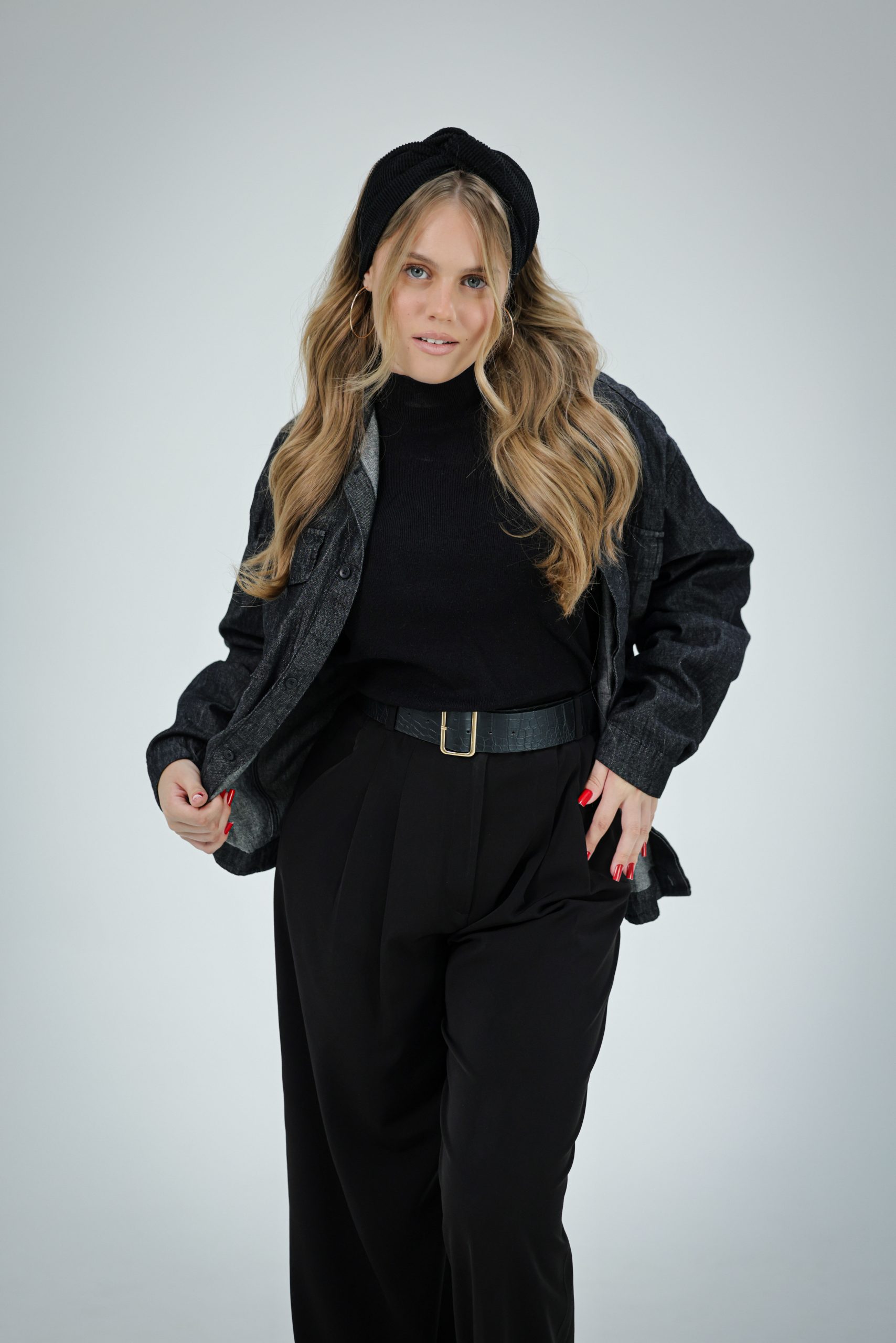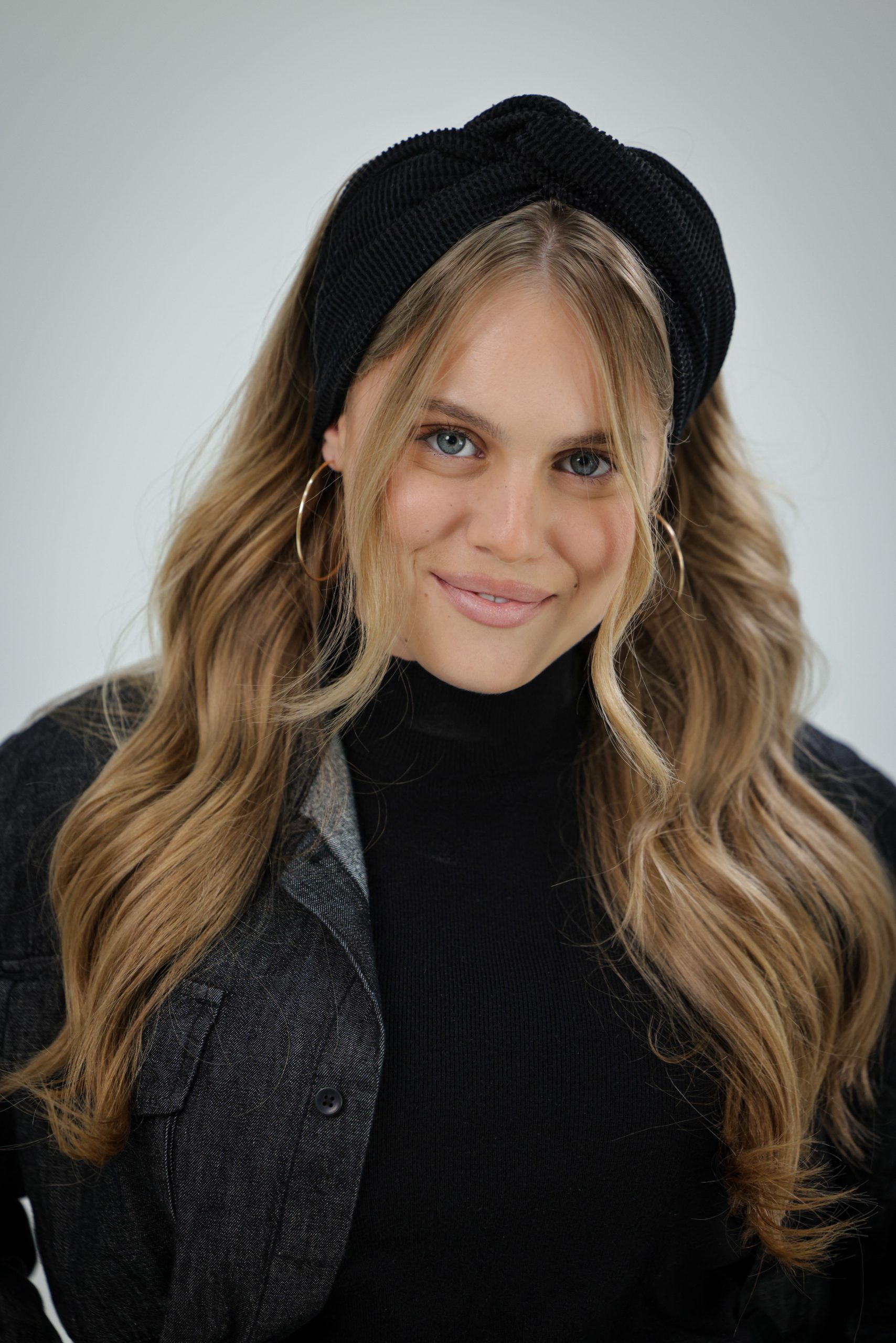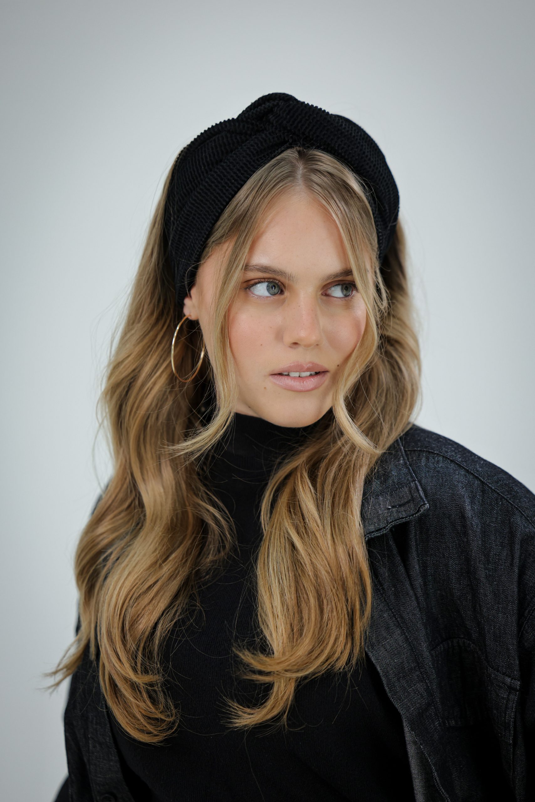 סרט לשיער עם חוט ברזל תפור בפנים ליצירת קשירות מגוונות ופשוטות, מבד פליסה ריבועים קטיפה שחור