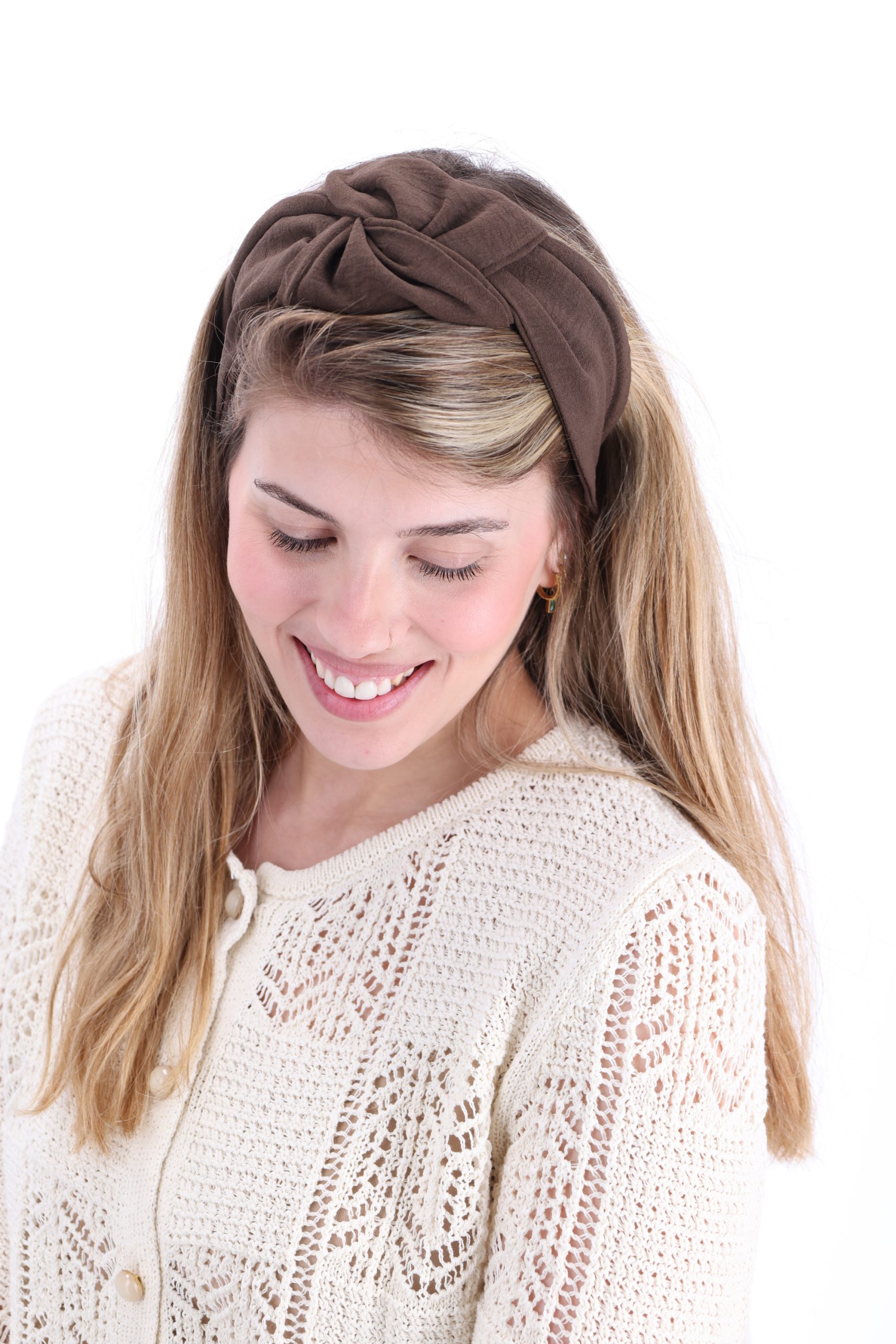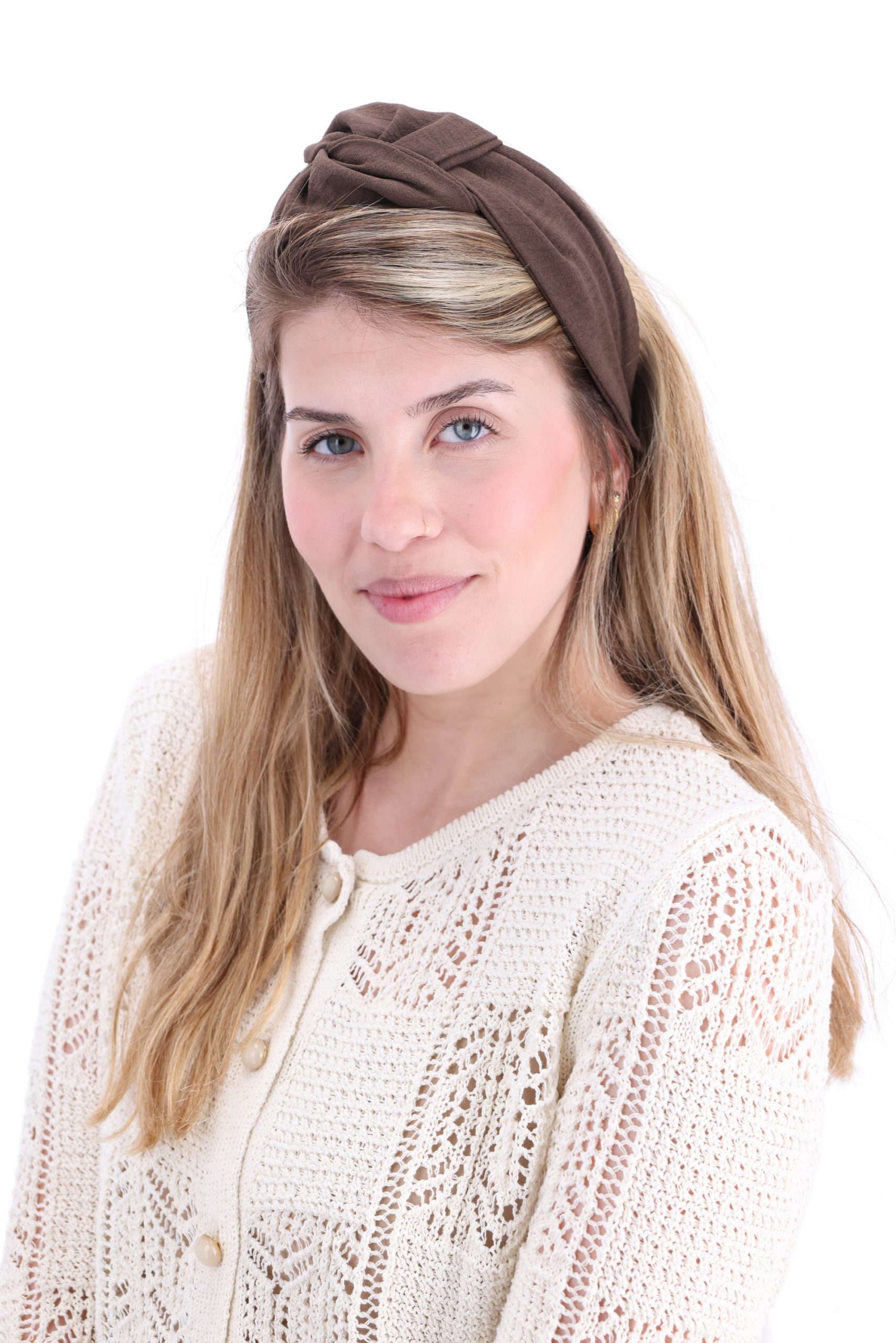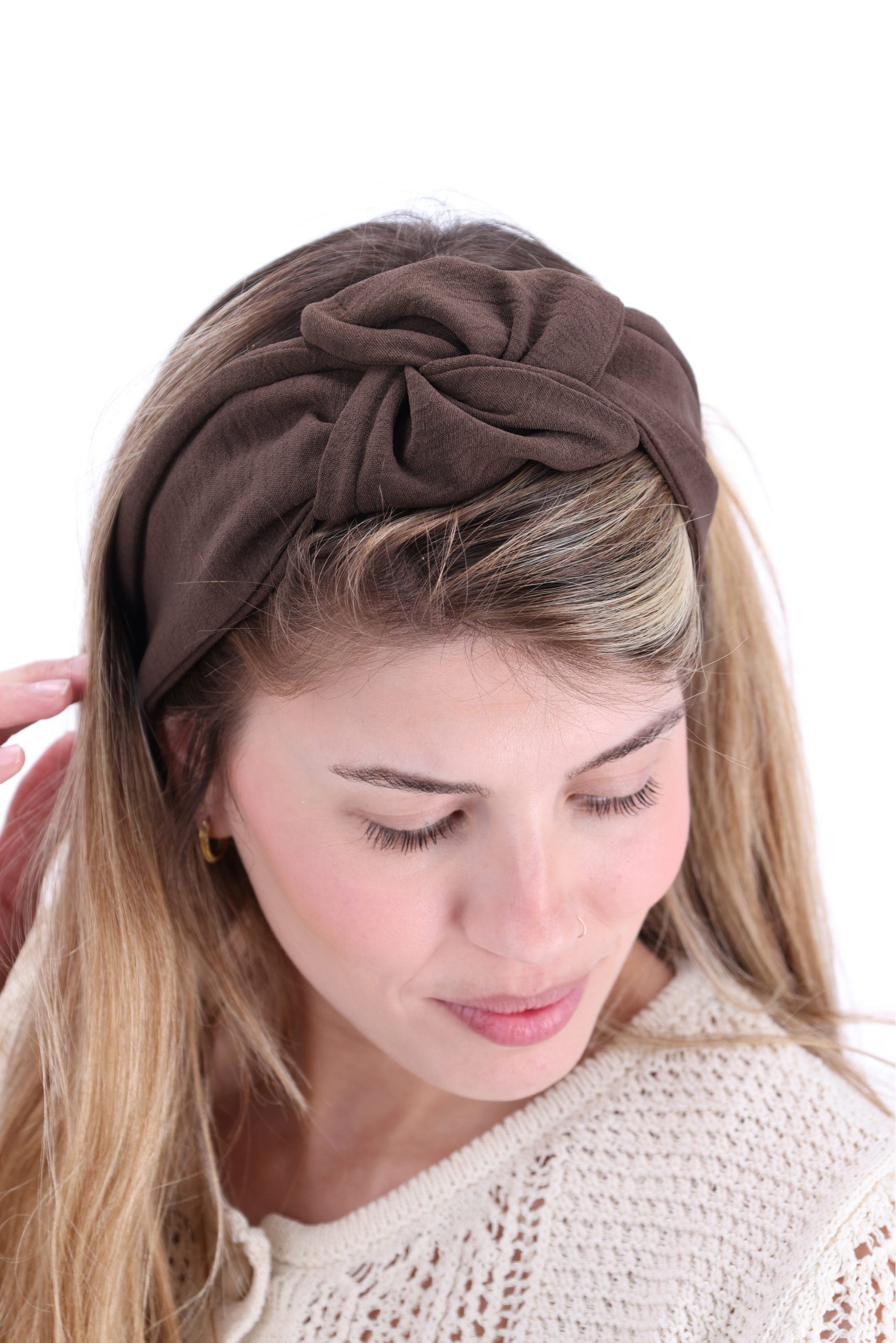 קשת לשיער עם חוט ברזל תפור בפנים , מבד כותנה איכותי בצבע חום עמוק