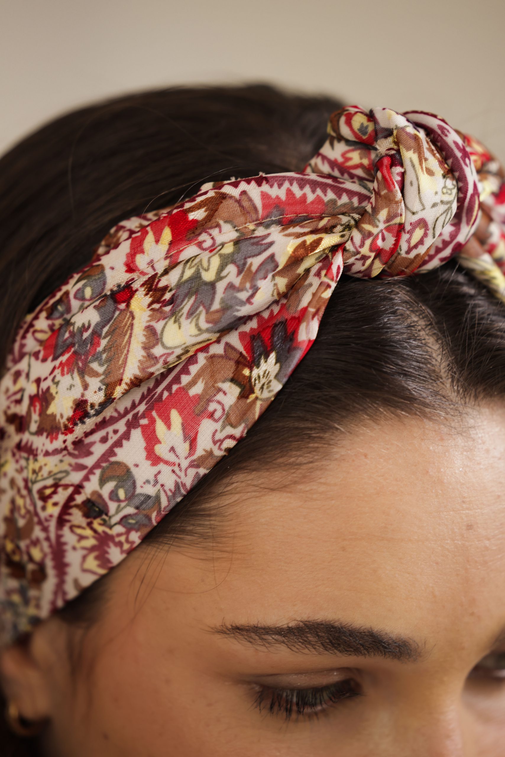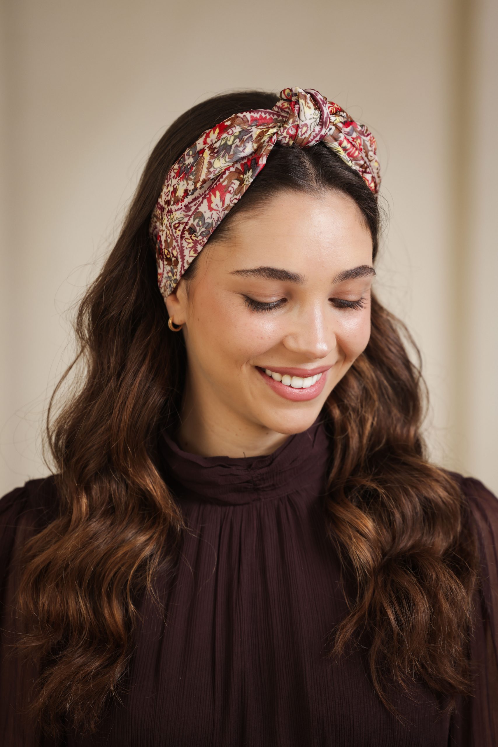 סרט לשיער עם חוט ברזל תפור בפנים ליצירת קשירות מגוונות ופשוטות, מבד שיפון בהדפס עם עיטורים בשלל צבעים