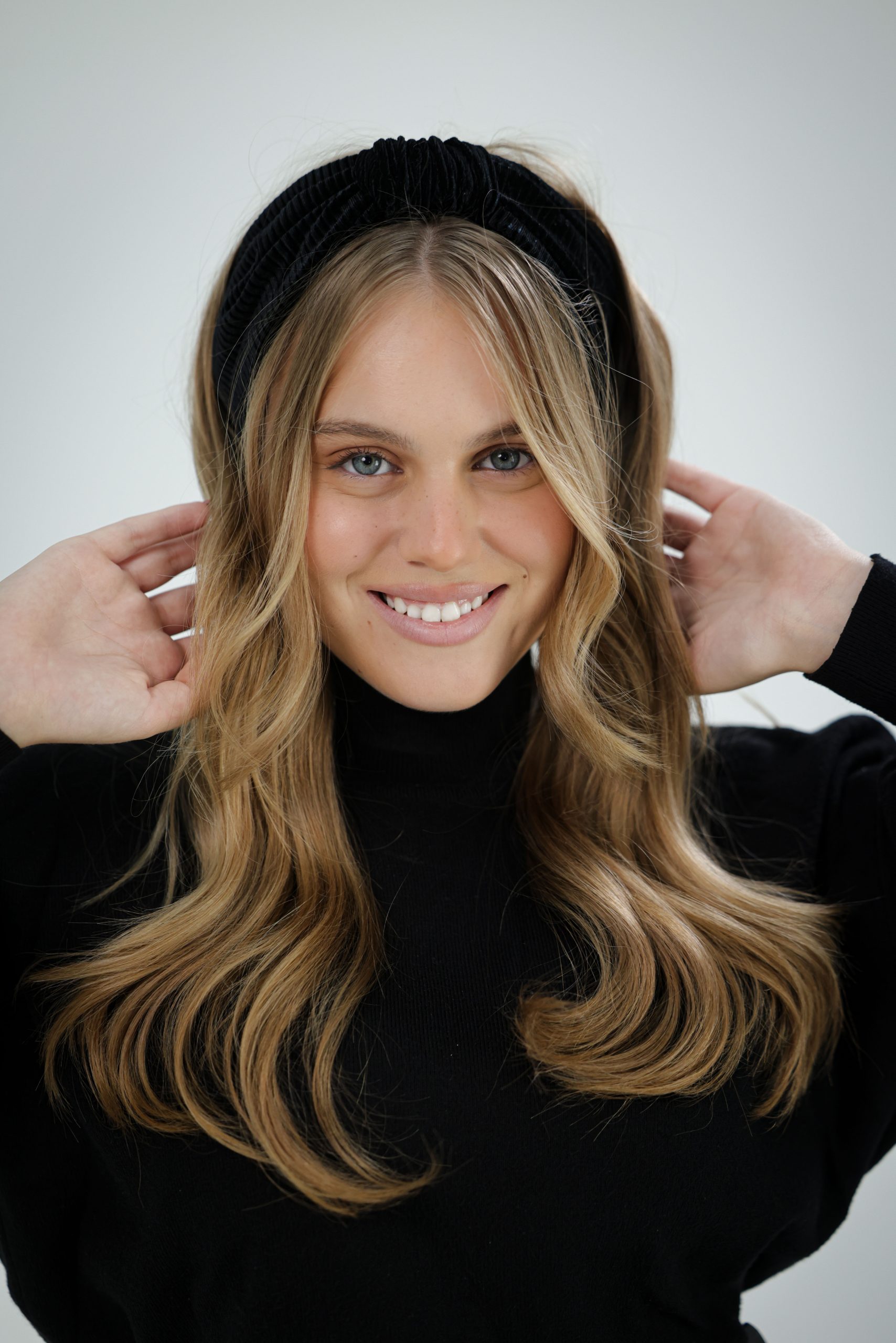 סרט לשיער שמגיע מוכן ונשאר לקשור אותו מתחת לשיער בעזרת סרטי הגומי שבקצה. בתוך הסרט תפור חוט ברזל תפור ליצירת משחק עם הנפח של הסרט. מבד קטיפה פליסה שחור.
