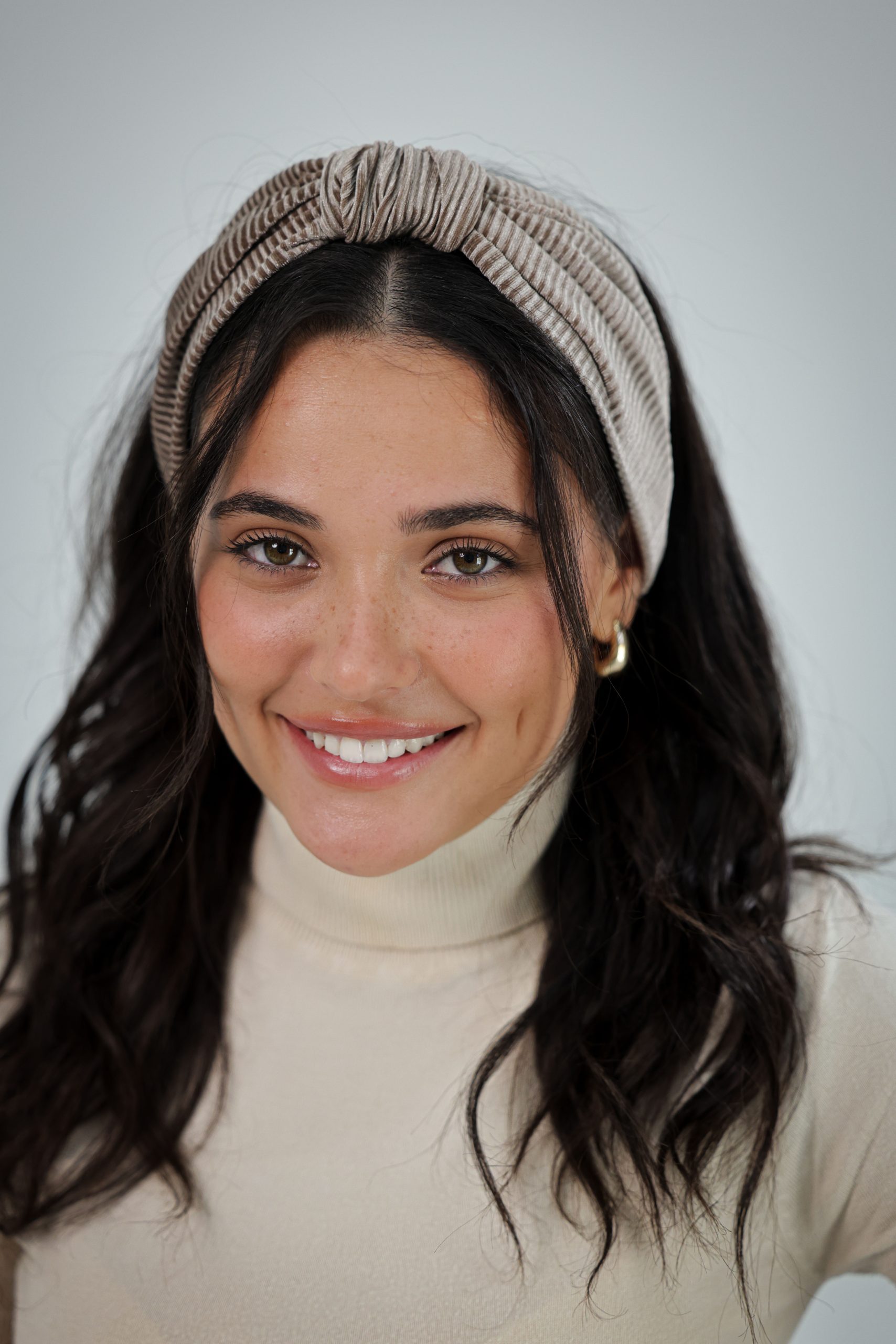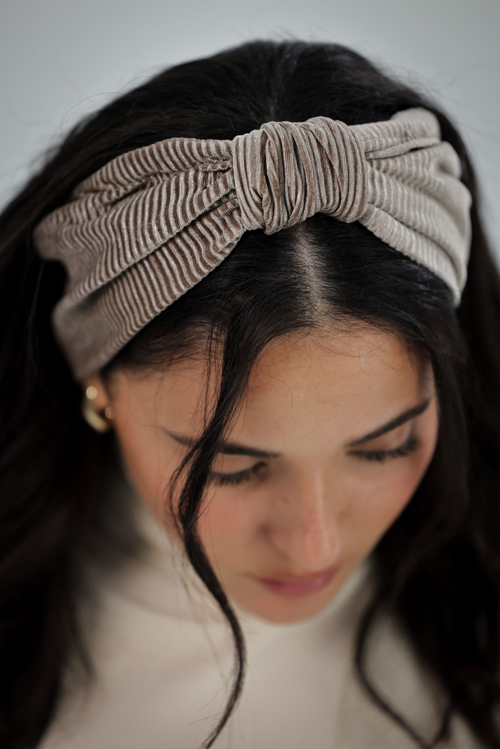 סרט לשיער שמגיע מוכן ונשאר לקשור אותו מתחת לשיער בעזרת סרטי הגומי שבקצה. בתוך הסרט תפור חוט ברזל תפור ליצירת משחק עם הנפח של הסרט. מבד קטיפה פליסה שמפניה.