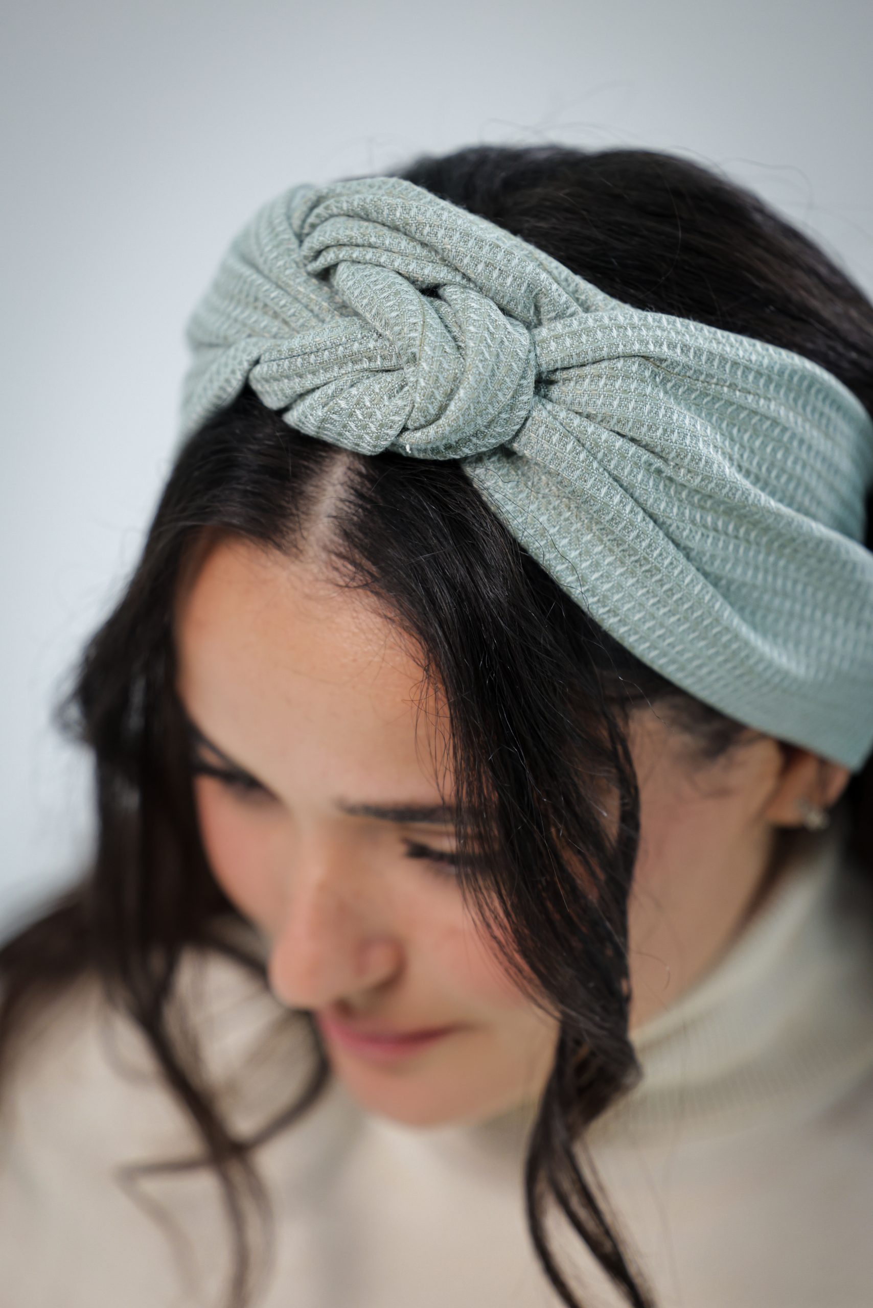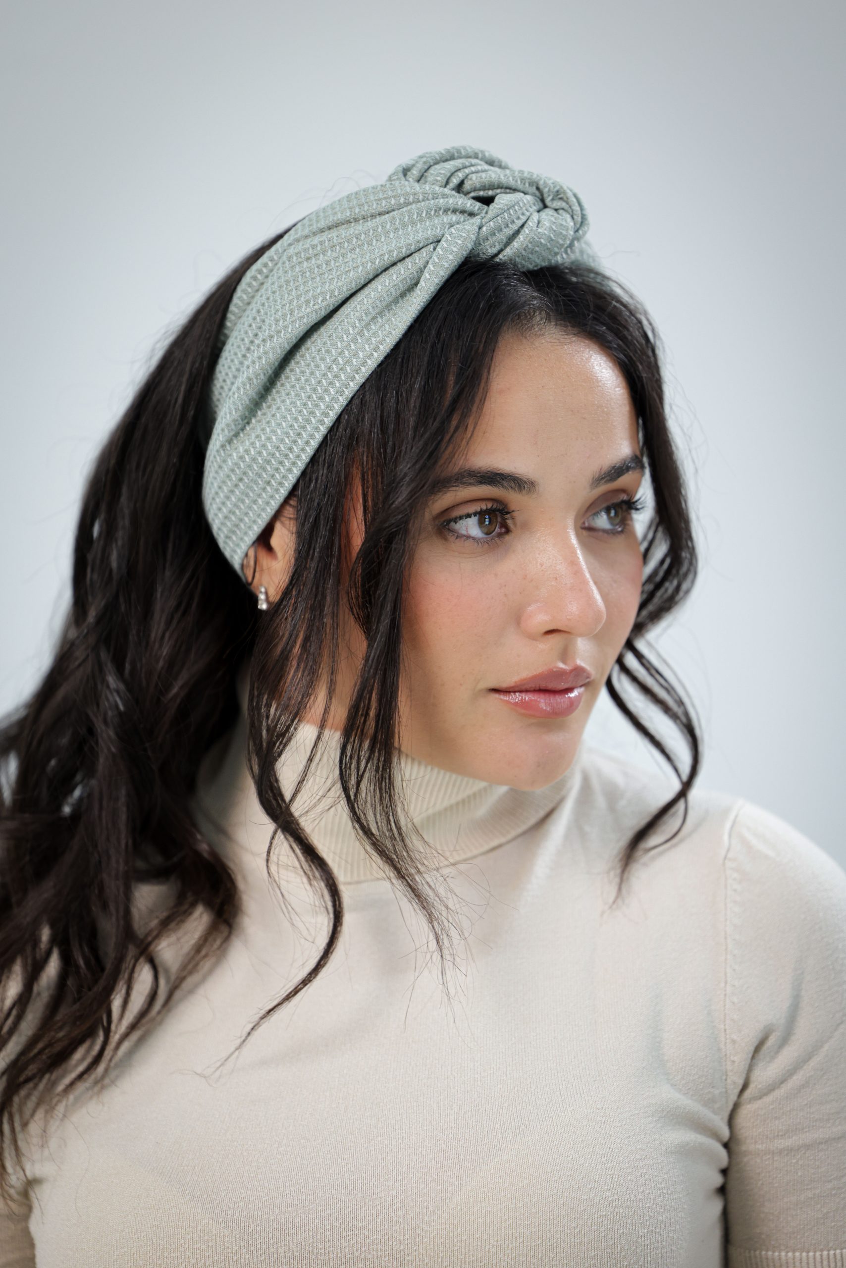 סרט לשיער עם חוט ברזל תפור בפנים ליצירת קשירות מגוונות ופשוטות, מבד פיקה בגוון מנטה