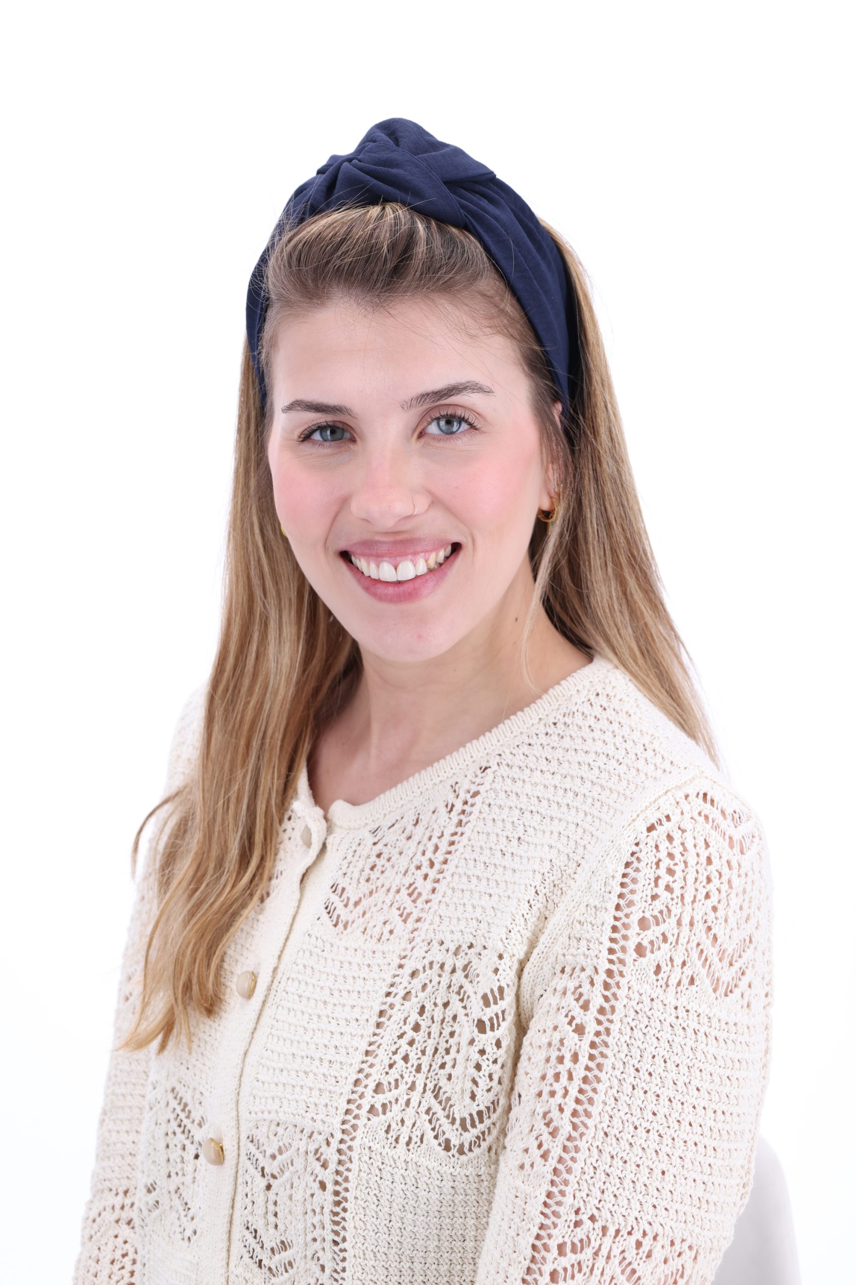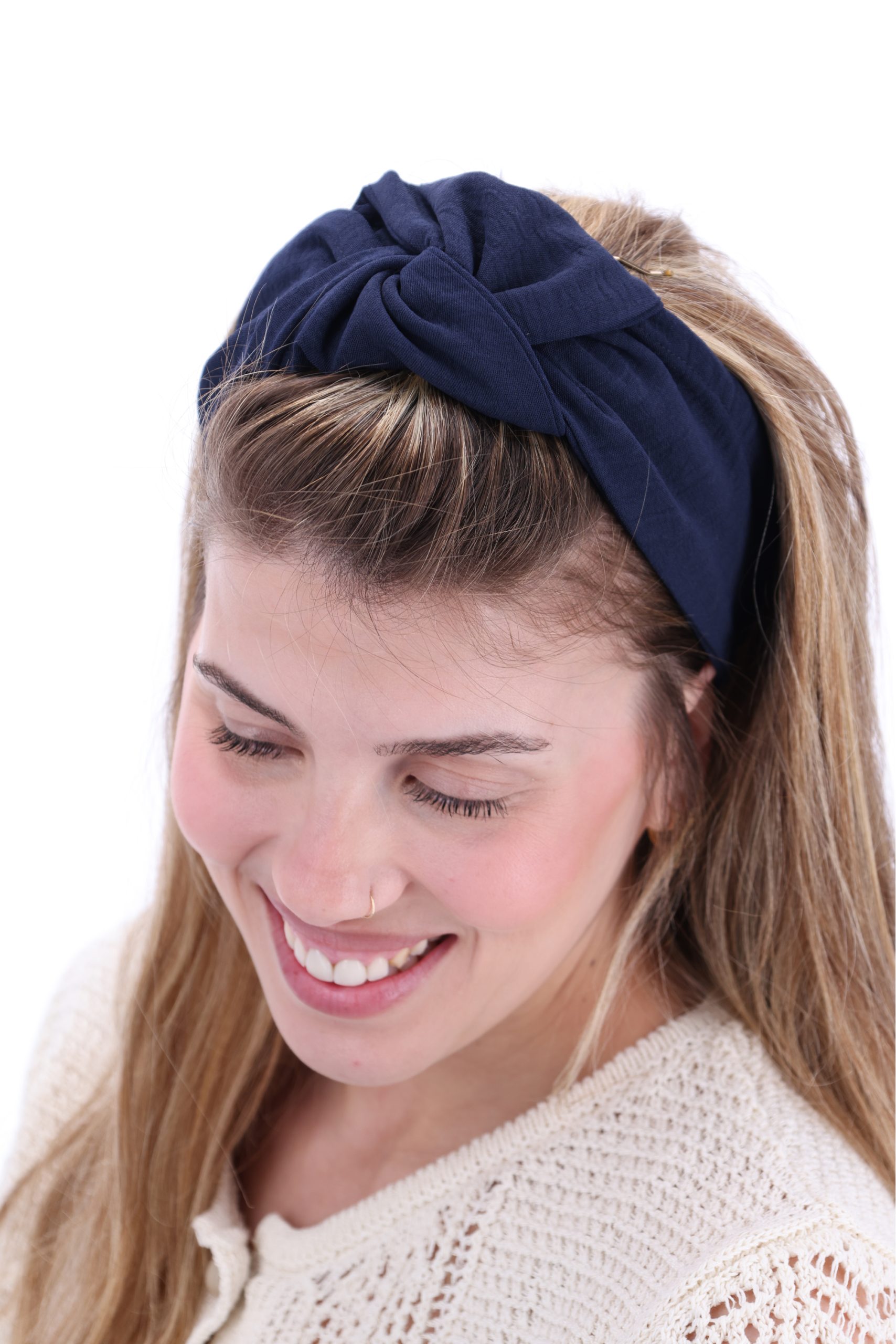 סרט לשיער עם חוט ברזל תפור בפנים ליצירת קשירות מגוונות ופשוטות, מבד כותנה איכותי בצבע כחול נייבי