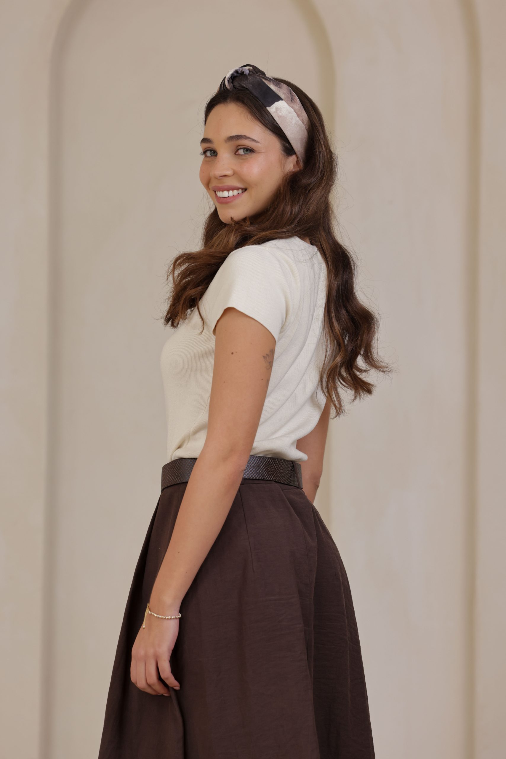 סרט לשיער עם חוט ברזל תפור בפנים ליצירת קשירות מגוונות ופשוטות, מבד סאטן עם הדפס בגוונים סגול וורוד לבן