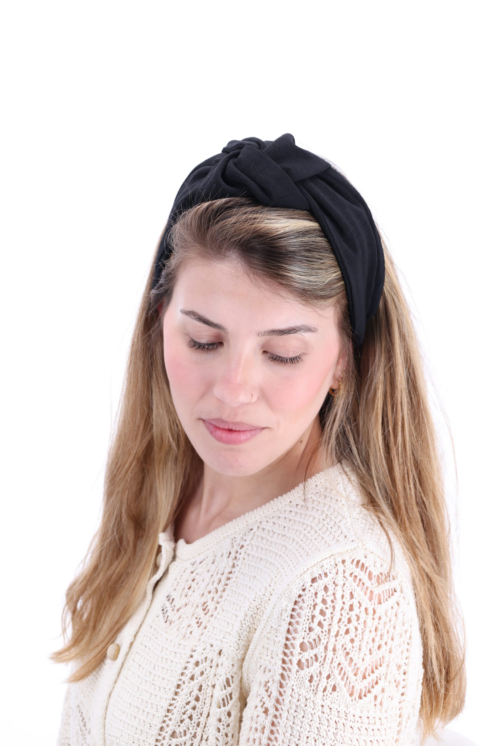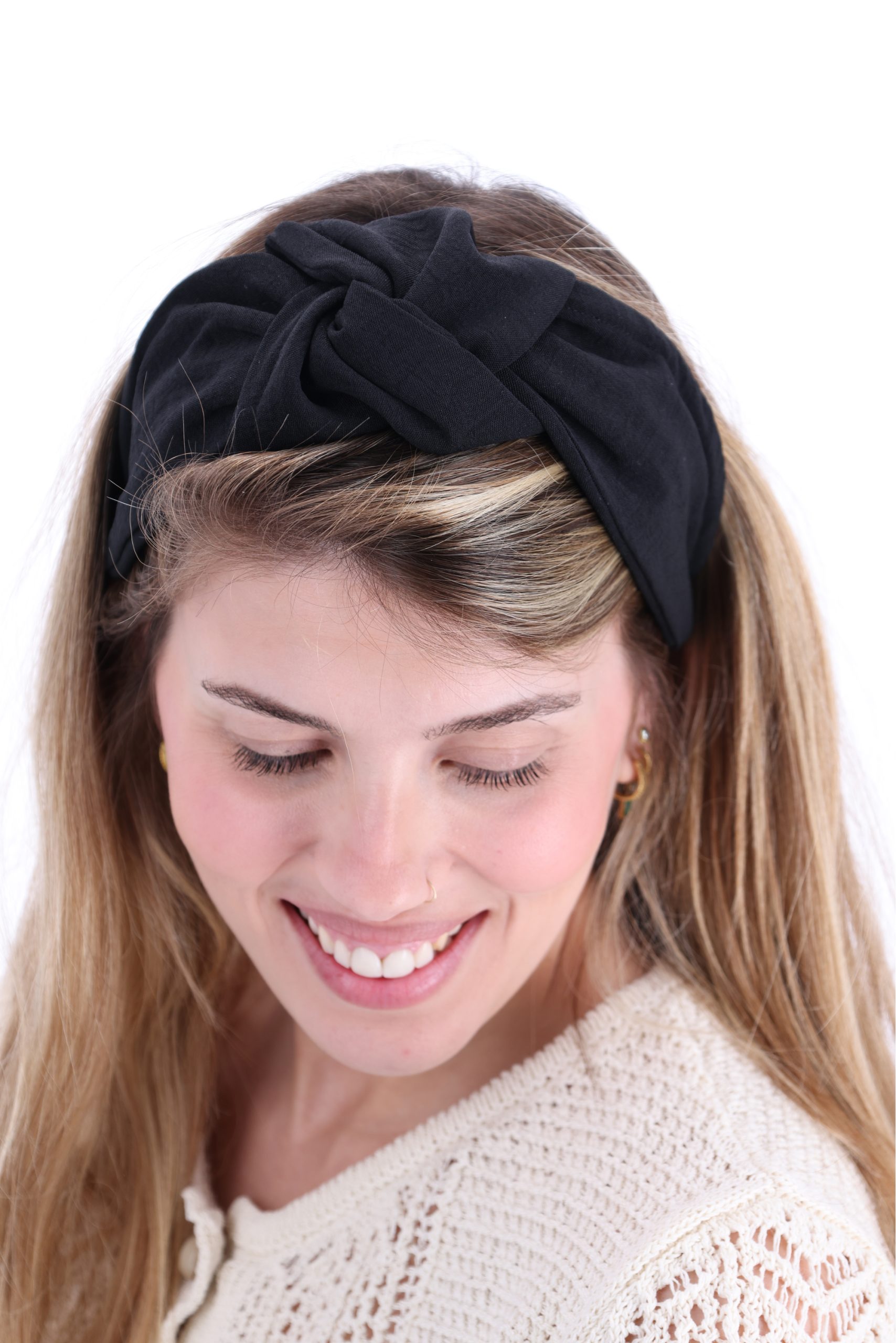 קשת לשיער עם חוט ברזל תפור בפנים , מבד כותנה איכותי בצבע שחור